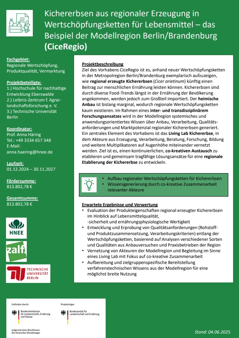 Kichererbsen aus regionaler Erzeugung in Wertschöpfungsketten für Lebensmittel – das Beispiel der Modellregion Berlin/Brandenburg