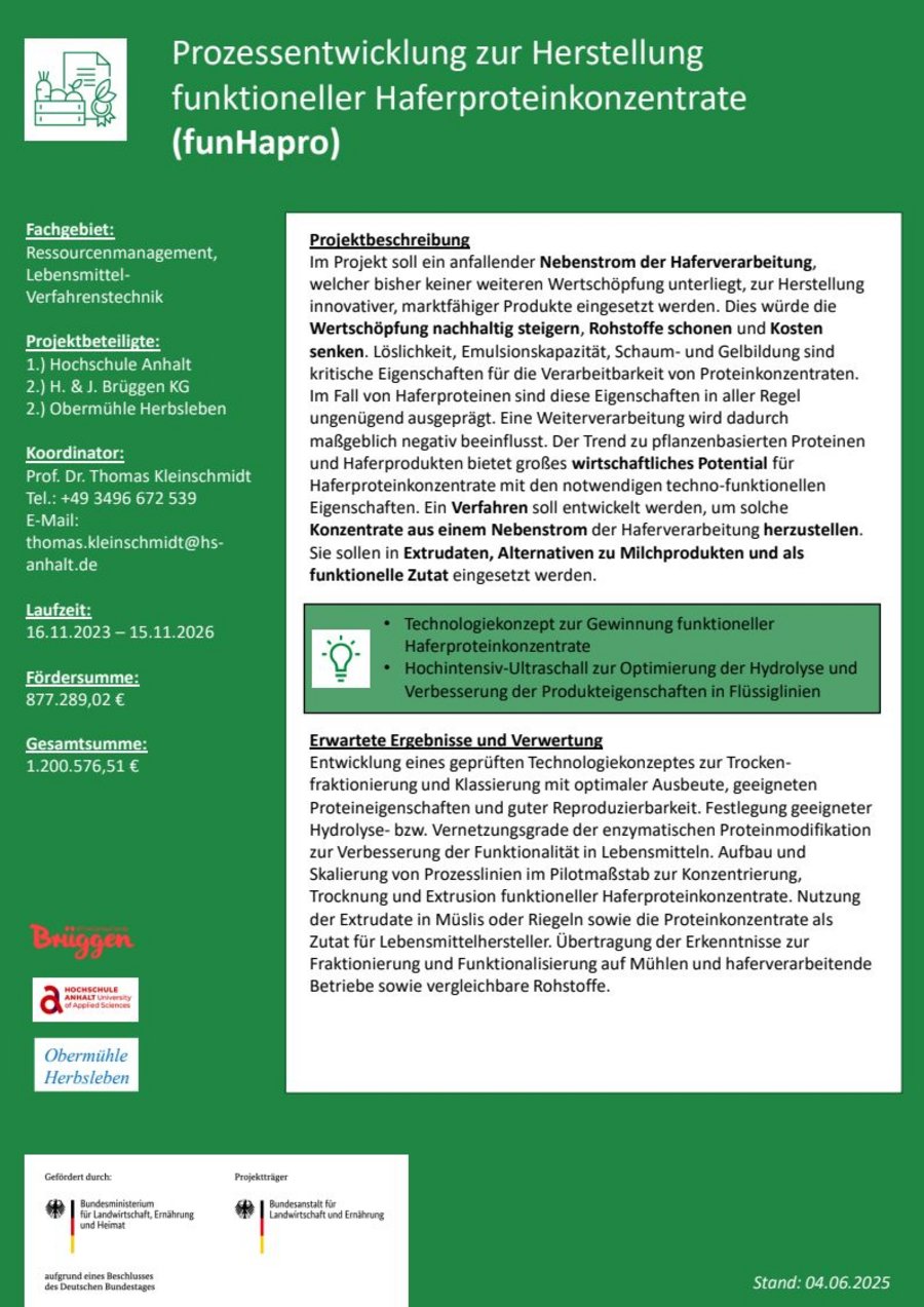 Prozessentwicklung zur Herstellung funktioneller Haferproteinkonzentrate