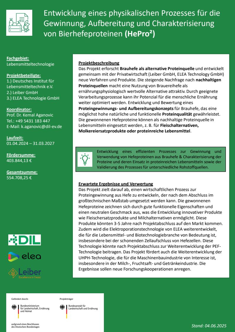 Entwicklung eines physikalischen Prozesses für die Gewinnung, Aufbereitung und Charakterisierung von Bierhefeproteinen