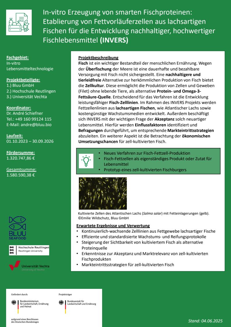 In-vitro Erzeugung von smarten Fischproteinen: Etablierung von Fettvorläuferzellen aus lachsartigen Fischen für die Entwicklung nachhaltiger, hochwertiger Fischlebensmittel