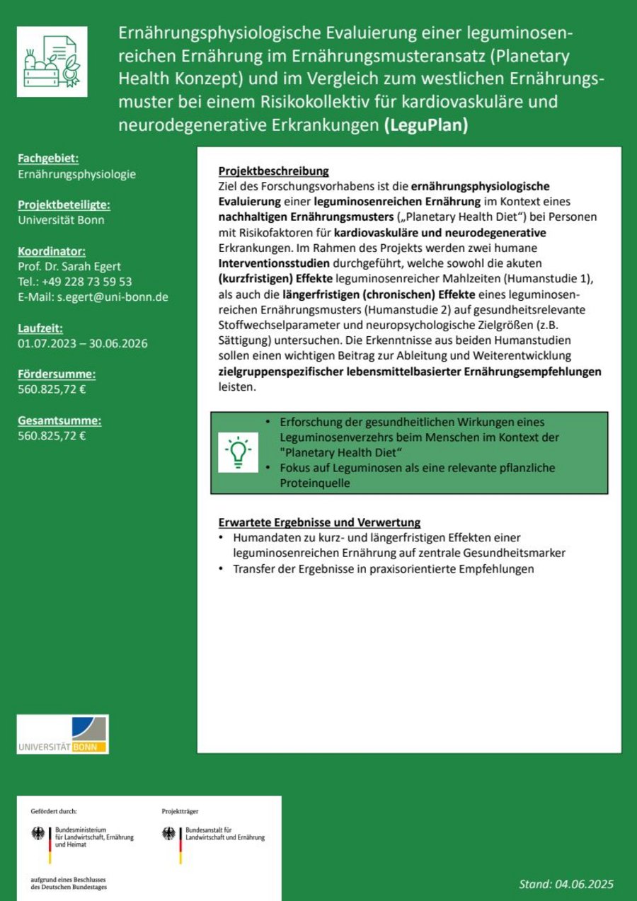 Ernährungsphysiologische Evaluierung einer leguminosen-reichen Ernährung im Ernährungsmusteransatz (Planetary Health Konzept) und im Vergleich zum westlichen Ernährungsmuster bei einem Risikokollektiv für kardiovaskuläre und neurodegenerative Erkrankungen