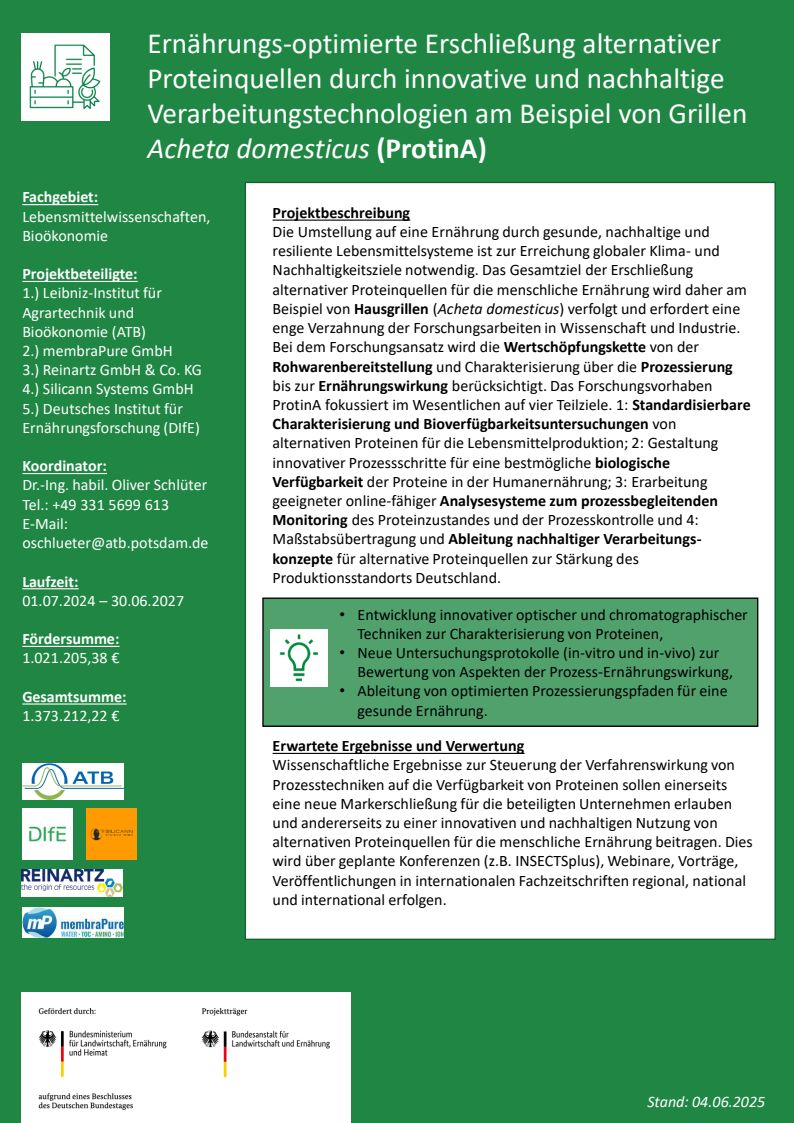 Ernährungs-optimierte Erschließung alternativer Proteinquellen durch innovative und nachhaltige Verarbeitungstechnologien am Beispiel von Grillen Achetadomesticus