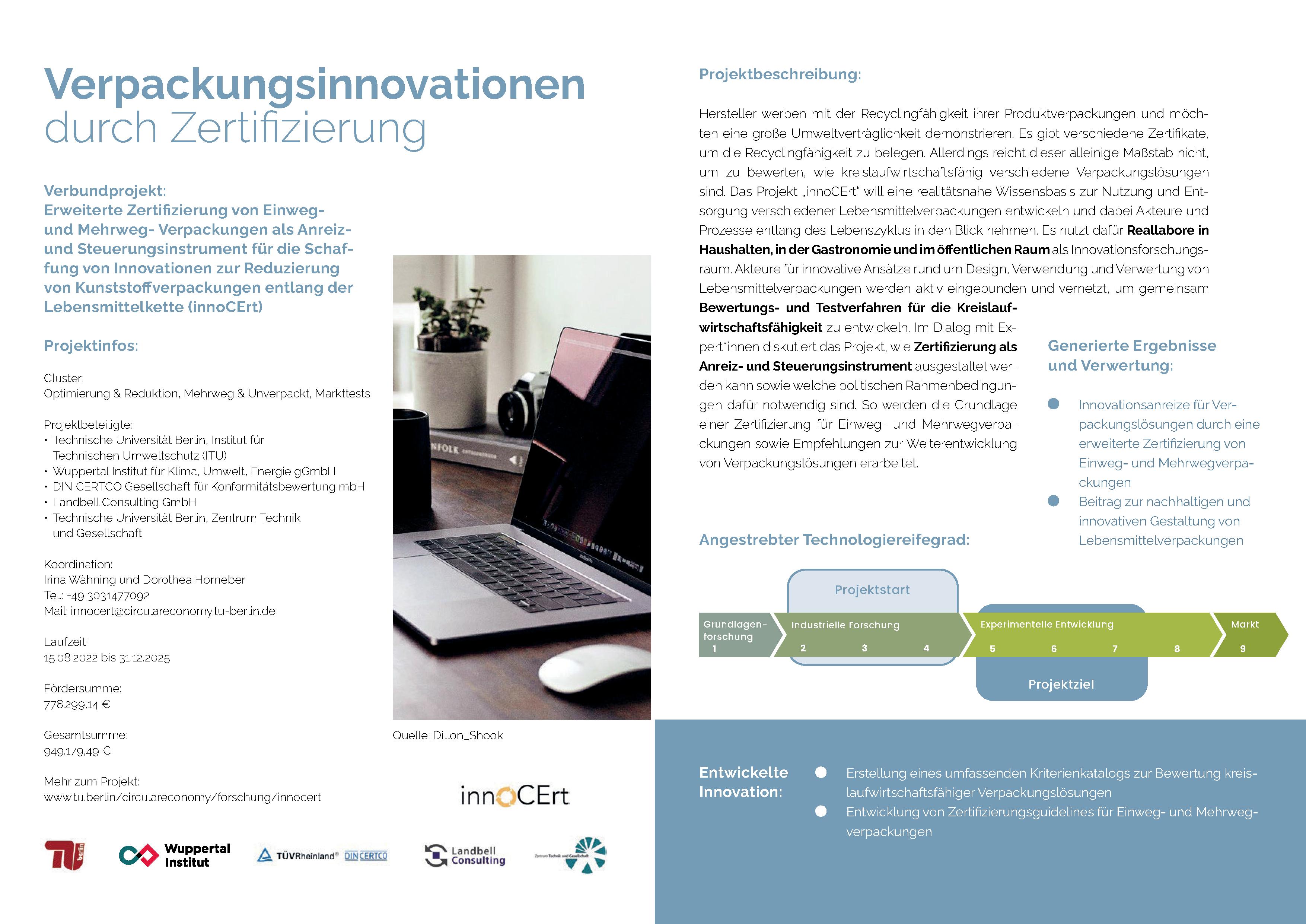 Erweiterte Zertifizierung von Einweg- und Mehrweg-Verpackungen als Anreiz- und Steuerungsinstrument für die Schaffung von Innovationen zur Reduzierung von Kunststoffverpackungen entlang der Lebensmittelkette