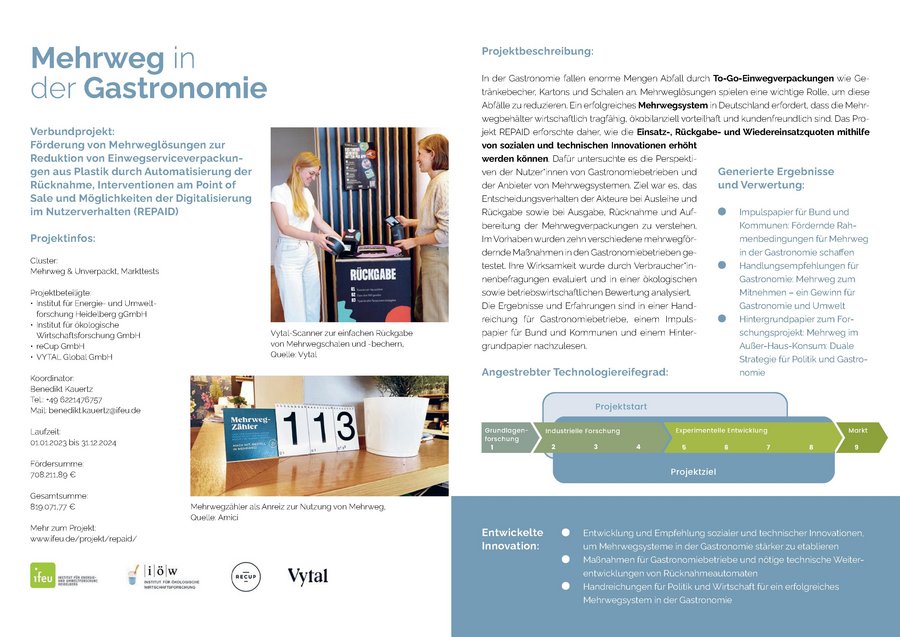 Förderung von Mehrweglösungen zur Reduktion von Einwegserviceverpackungen aus Plastik durch Automatisierung der Rücknahme, Interventionen am Point of Sale und Möglichkeiten der Digitalisierung im Nutzerverhalten