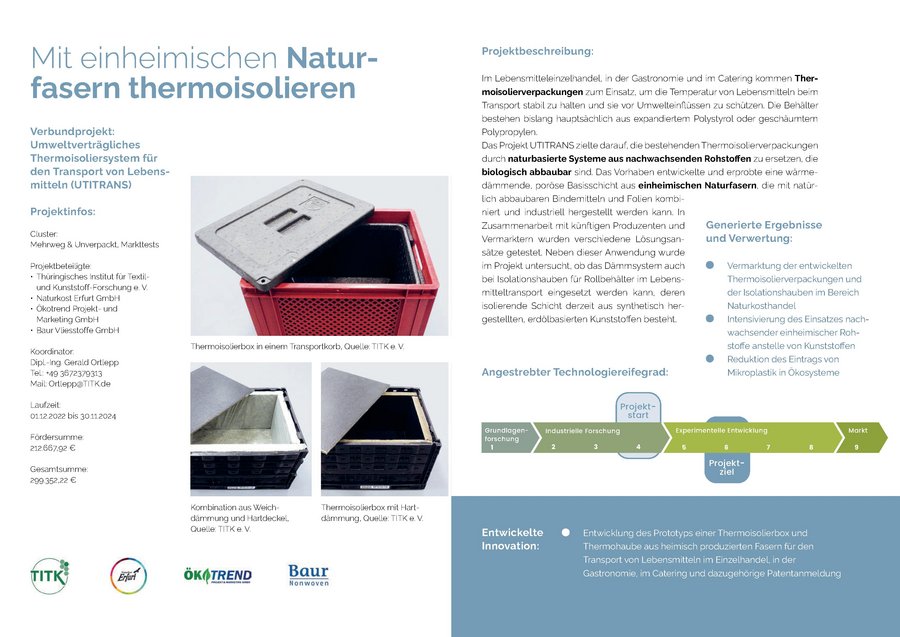 Umweltverträgliches Thermoisoliersystem für den Transport von Lebensmitteln