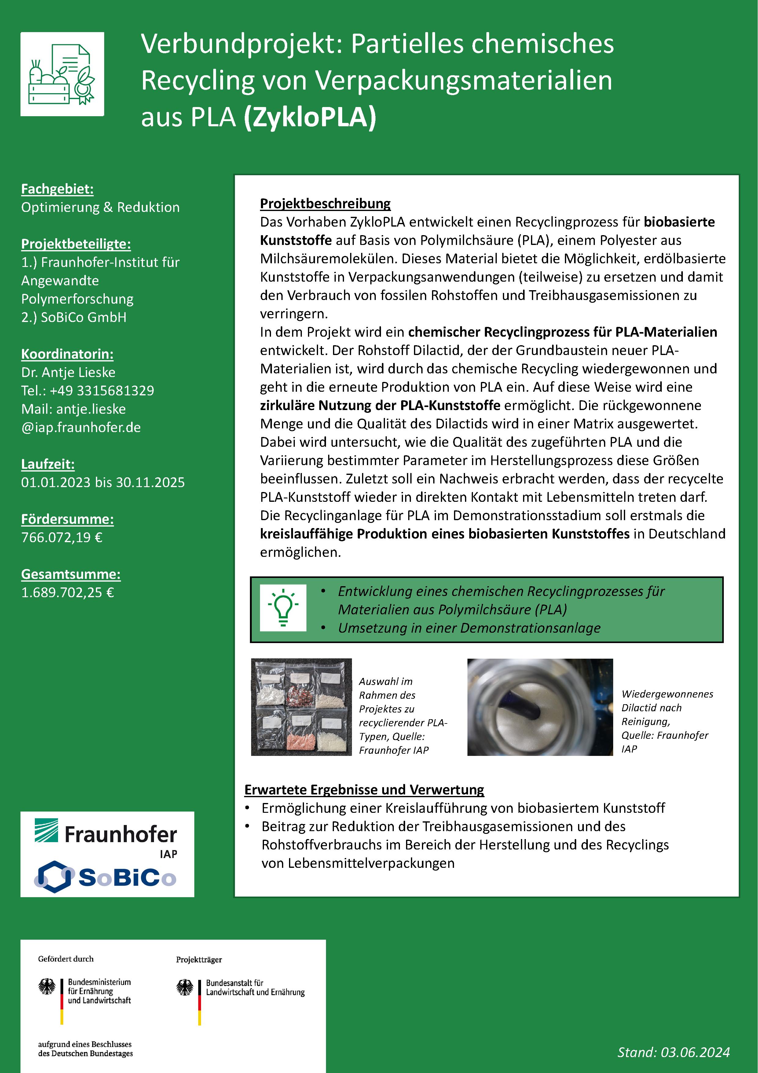 ZykloPLA Reduktion von Kunststoff entlang der Lebensmittelkette