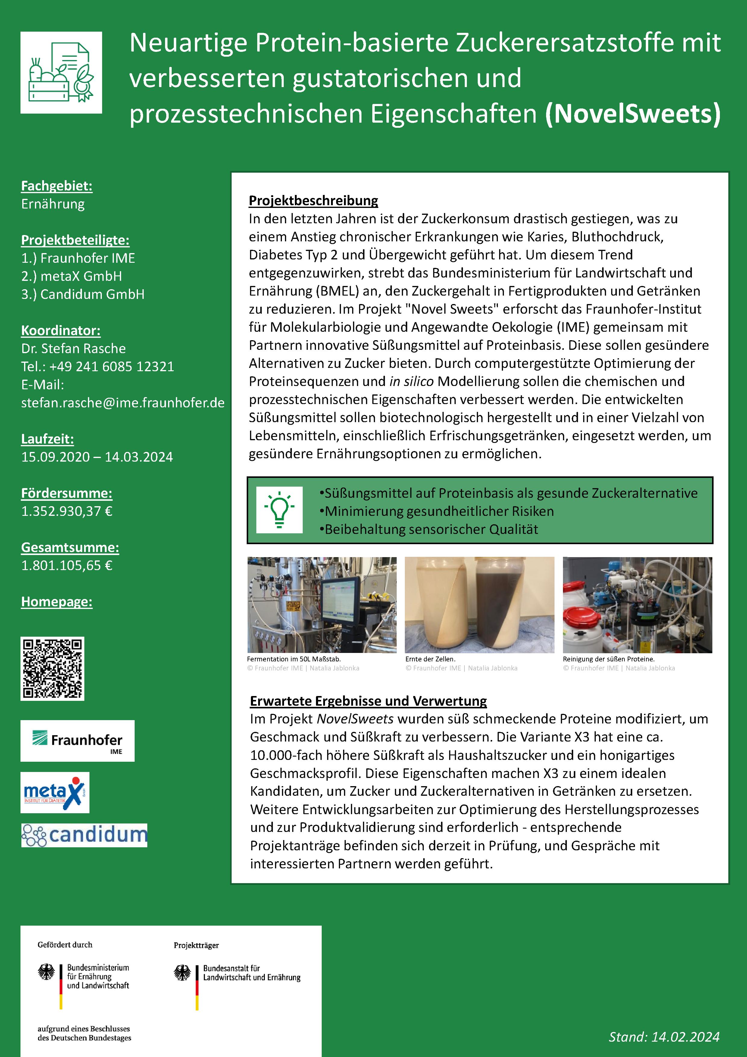 Neuartige Protein-basierte Zuckerersatzstoffe mit verbesserten gustatorischen und prozesstechnischen Eigenschaften