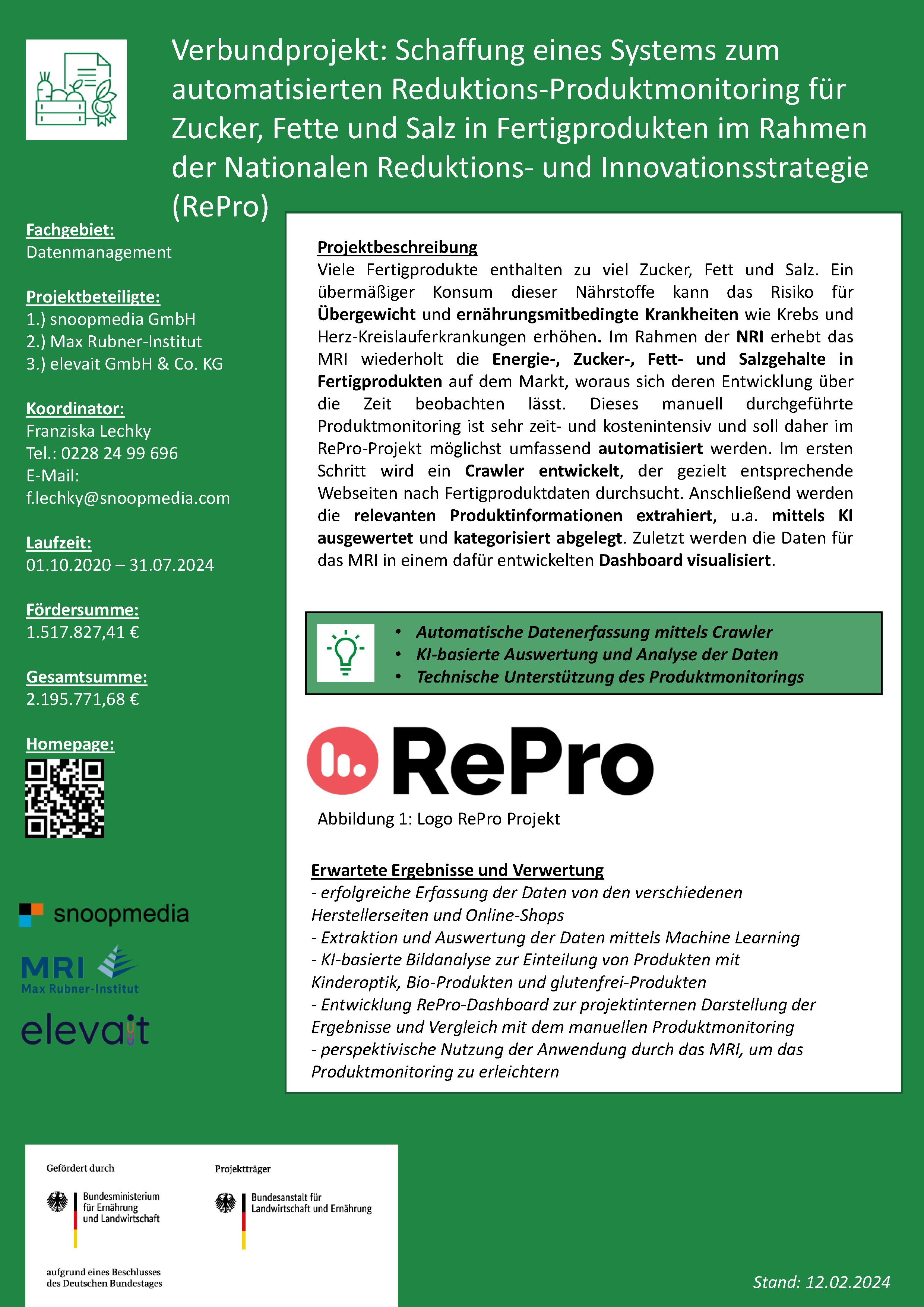 Schaffung eines Systems zum automatisierten Reduktions-Produktmonitoring für Zucker, Fette und Salz in Fertigprodukten im Rahmen der Nationalen Reduktions- und Innovationsstrategie